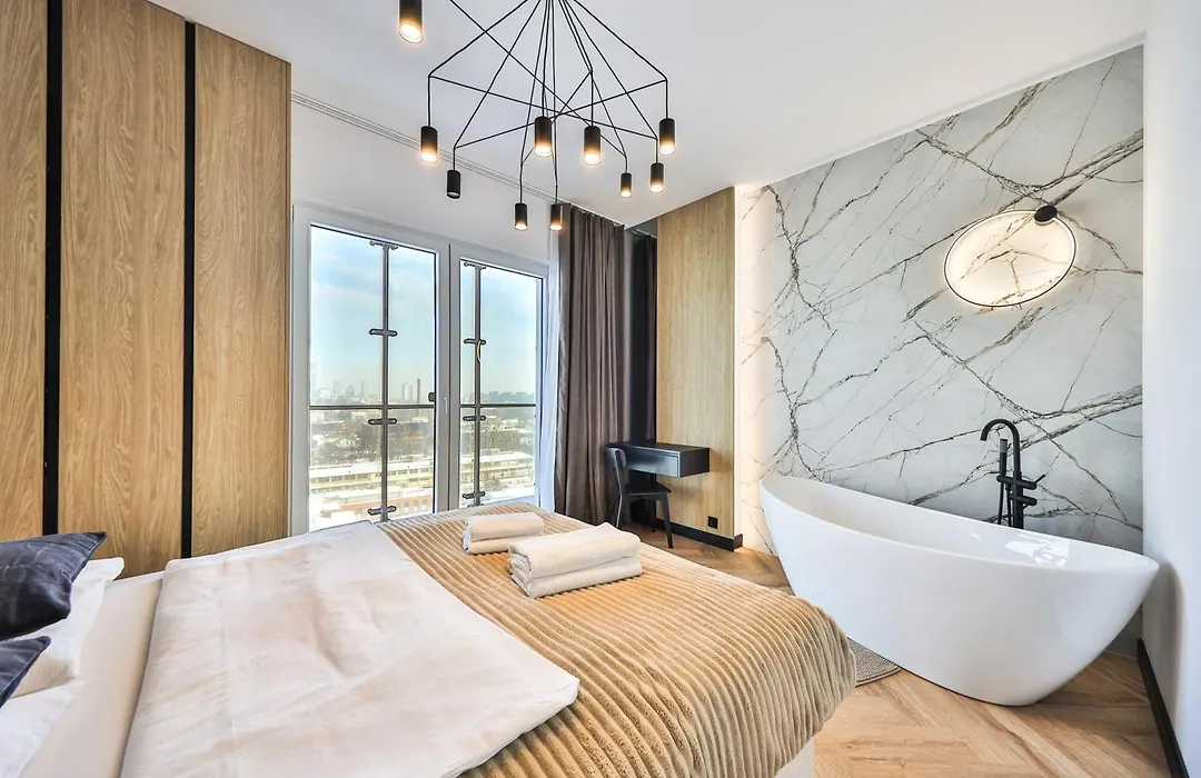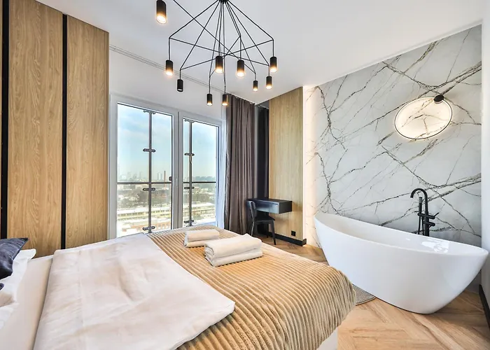 Das Kasprzaka 29 Wola Tower Apt Z Wanna I Widokiem Na Panorame Centrum By Perfect Apart 1231 Warschau liegt in ca. 5 Gehminuten Entfernung vom Bahnhof Warszawa Wola und 500 m vom Kreisverkehr Tybetu. Dieses Apartment im Bezirk Wola von Warschau verfügt über eine Terrasse mit Blick auf die Stadt.